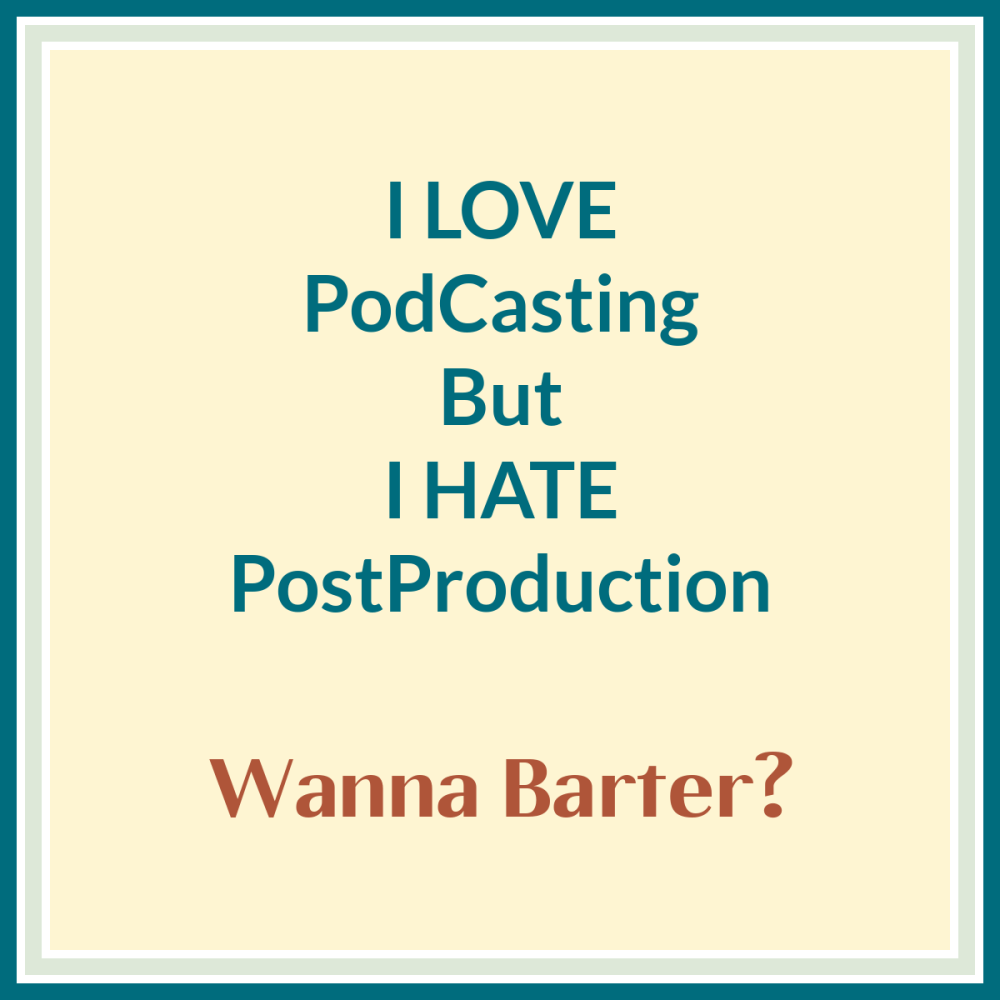 I’m seeking a person who digs post-production work and wants a creative outlet. I would do the front end (research, writing, and recording), and this person would do the back end (editing, publishing, and marketing).